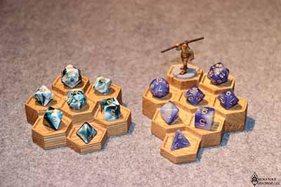 Display your dice and/or your mini with these amazing crafted hardwood Display Stands.