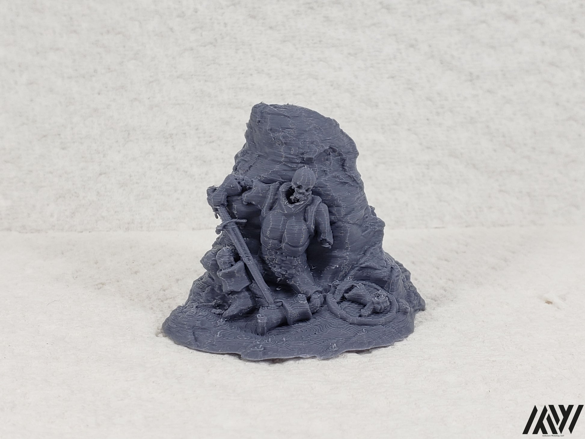 The Long Dead Adventurer is printed in Grey PLA. If you would like it in another color, please contact me.