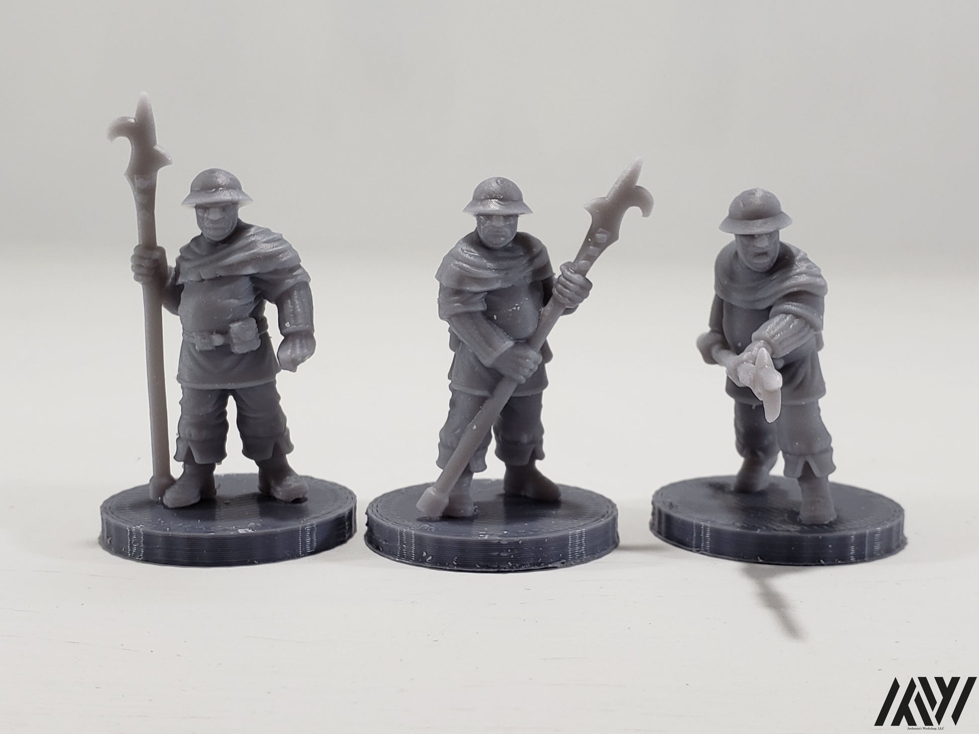 Town Guard with Set comes with a (3) simple 1″ dia base to glue to the mini.