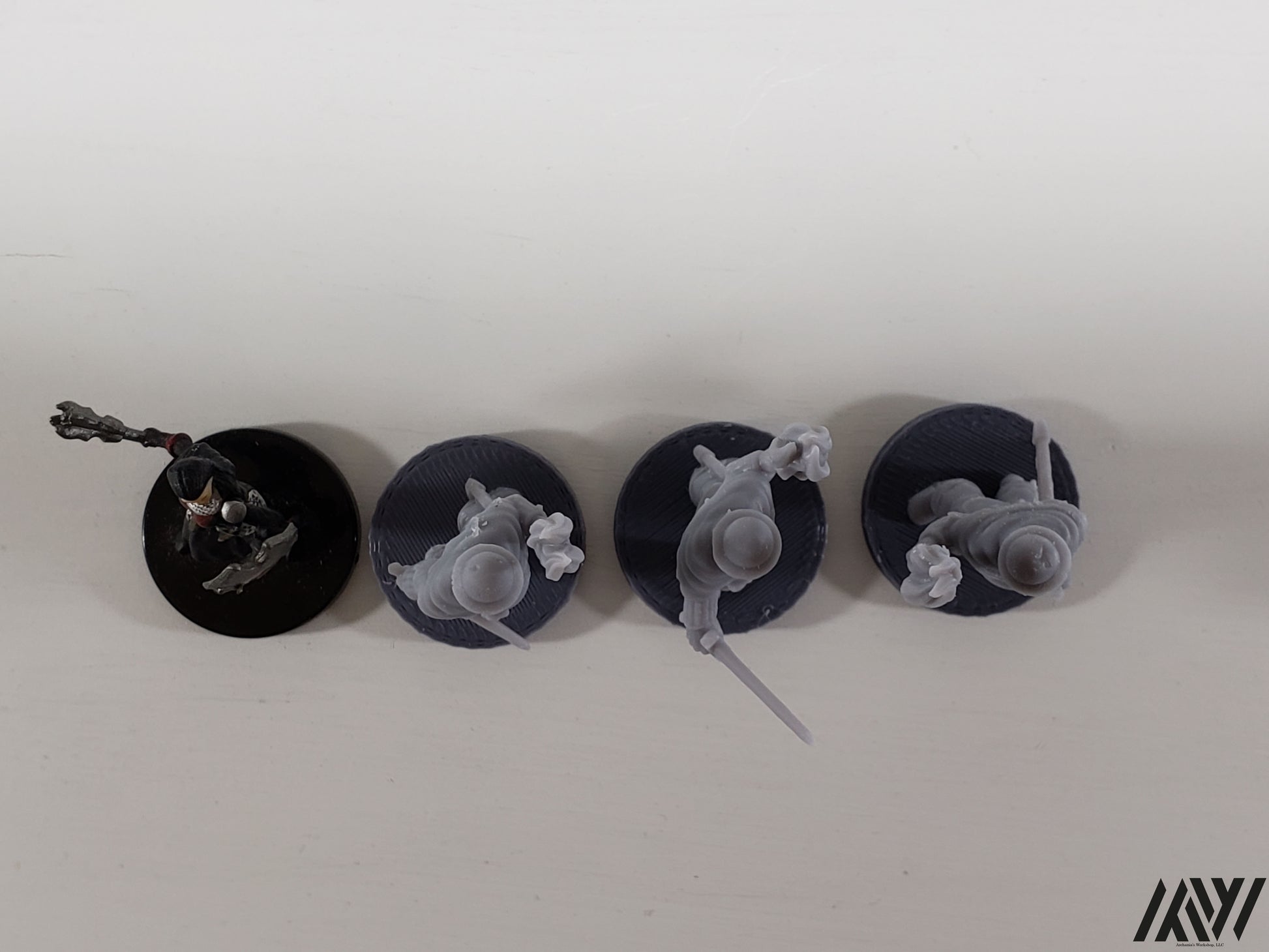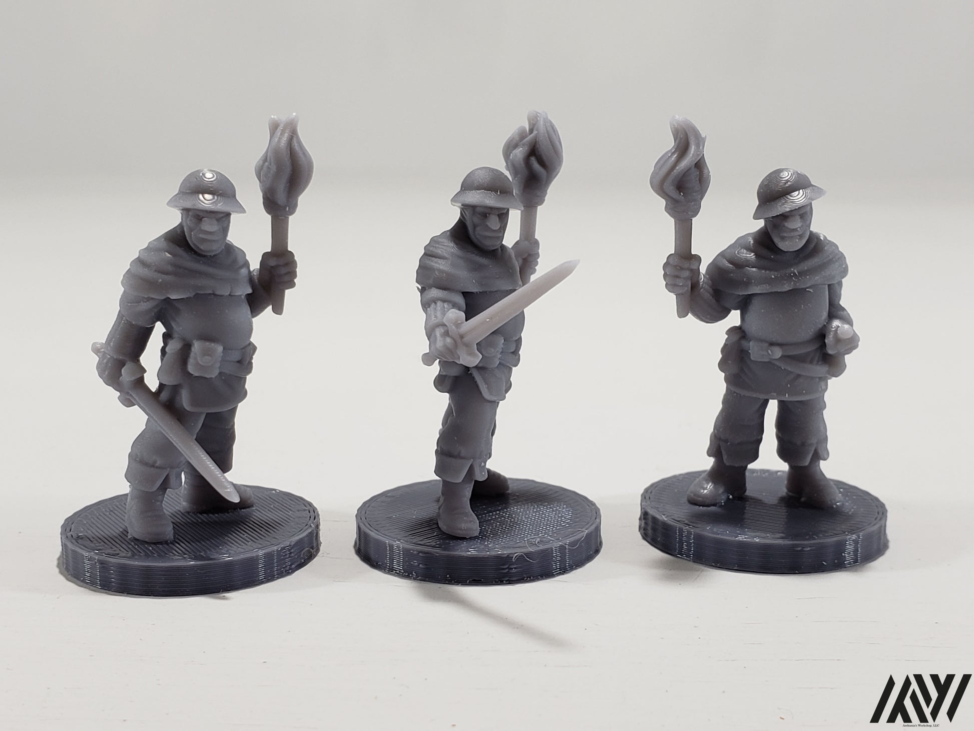 Town Guard with Torches Set comes with a (3) simple 1″ dia base to glue to the mini.